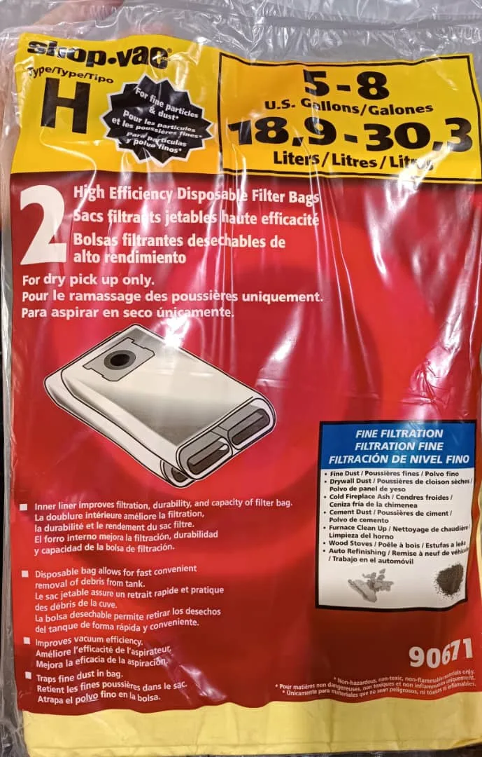 BOLSA DE FILTRO DESCARTABLE 10 – 14GALONES (PACK DE 2) ## 90672 ## SHOP VAC
