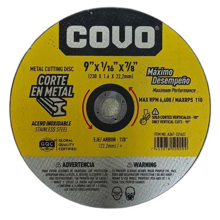 DISCO CORTE METAL 9" x 1/16" x 7/8" FINO ## A367-231622 ## COVO cantidad