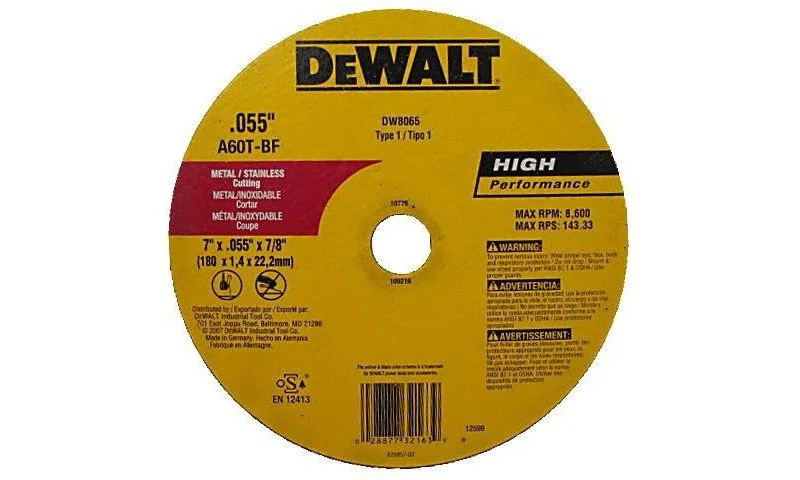 DISCO CORTE METAL /A. INOX 7″x 1/16″x7/8″ ## DW8065 ## DEWALT