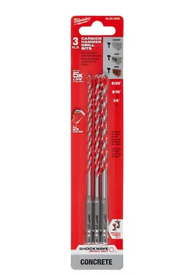 JUEGO DE BROCAS P/TALADRO PERCUTOR ( 5/32", 3/16", 1/4" ) 3 PZAS ## 48-20-9050 ## MILWAUKEE cantidad