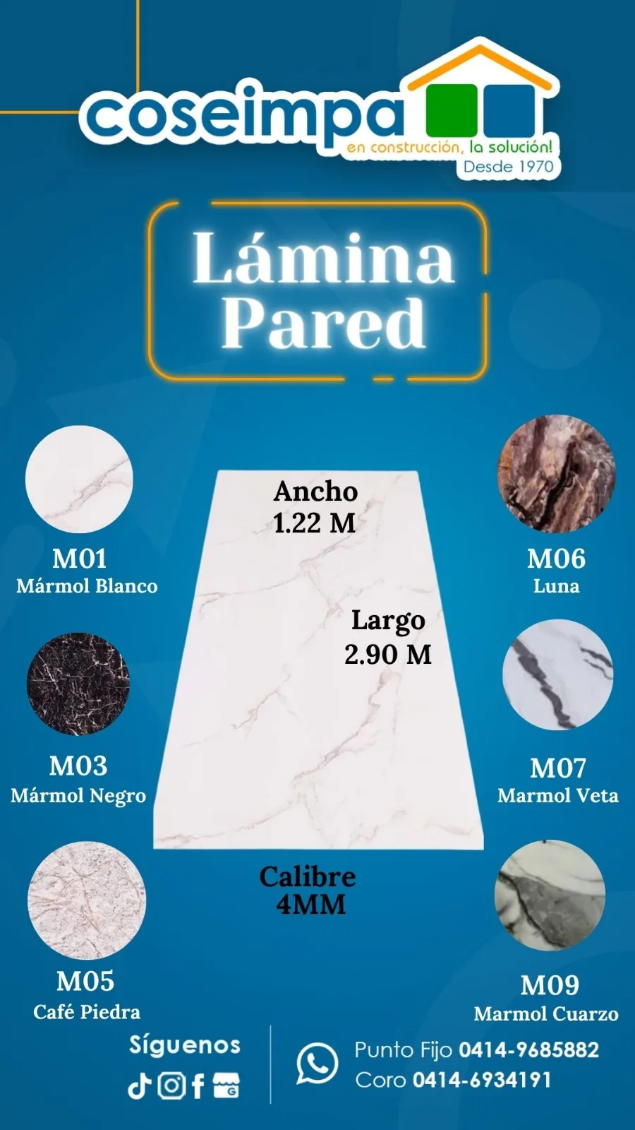 LAMINA PARED M01-244 MARMOL BLANCO 4mm 2,44 x 1,22m cantidad