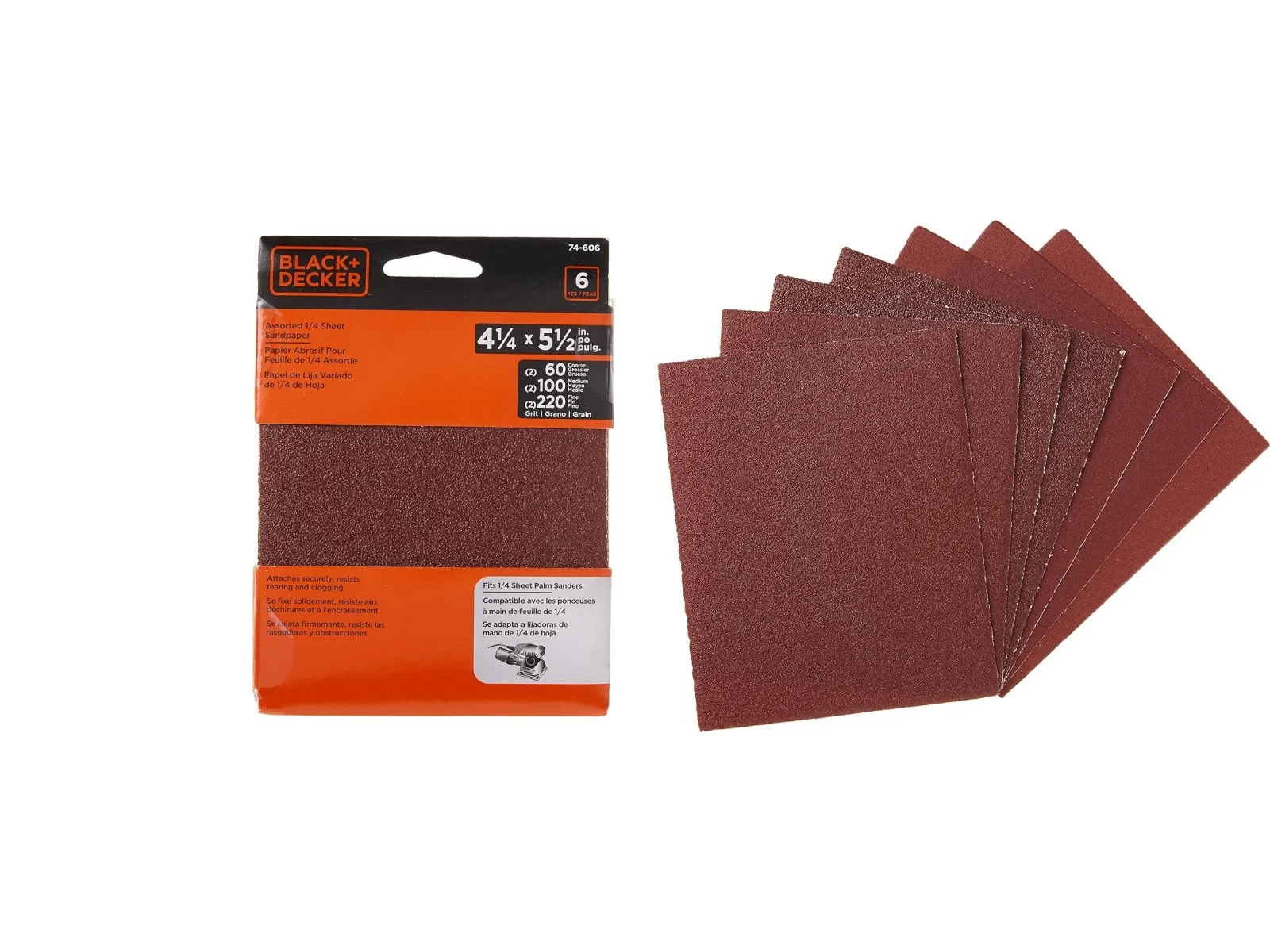 LIJAS SURTIDAS 4 1/4″ x 5 1/2″ (PACK 6 UNID) ## 74-606 ## BLACK & DECKER